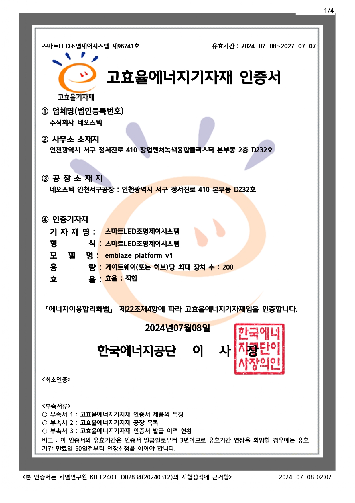 플랫폼 기반의 조명 시스템 고효율 기자재 등록을 완료하엿습니다.
