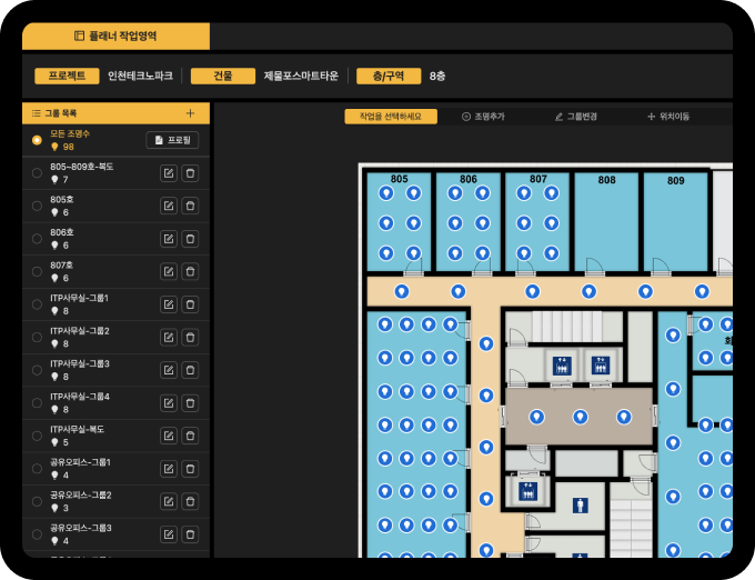 우리의 혁신적인 스마트 조명 제어 시스템 소프트웨어로 귀하의 조명 환경을 혁신적으로 관리하십시오. 사용자 친화적인 인터페이스와 강력한 기능을 통해 에너지 효율을 극대화하고, 조명 관리를 손쉽게 할 수 있습니다.
